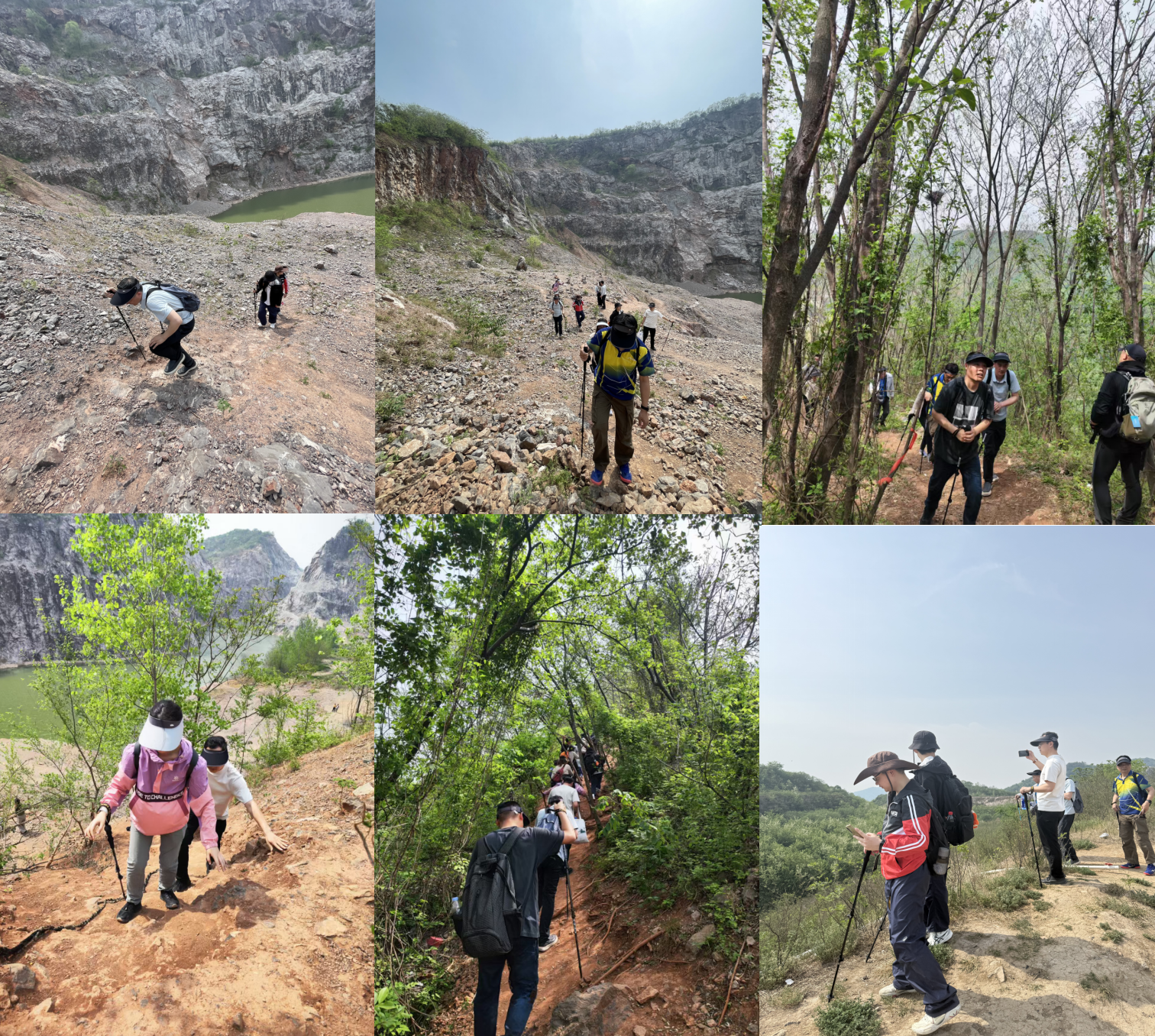 活动当天,教职工们身着轻便的运动装,在专业登山领队的带领下,沿着精心规划的路线前行。沿途,穿越南京“小三峡”河流,在十里长山凹的矿坑峡谷间感受荒野的魅力。从余村古村落出发,沿废弃矿道深入陡峭崖壁与碧绿矿坑湖的秘境,攀爬碎石坡,探索野径,体验山体褶皱间的工业遗迹与自然重生的力量。春日的美景令人心旷神怡......